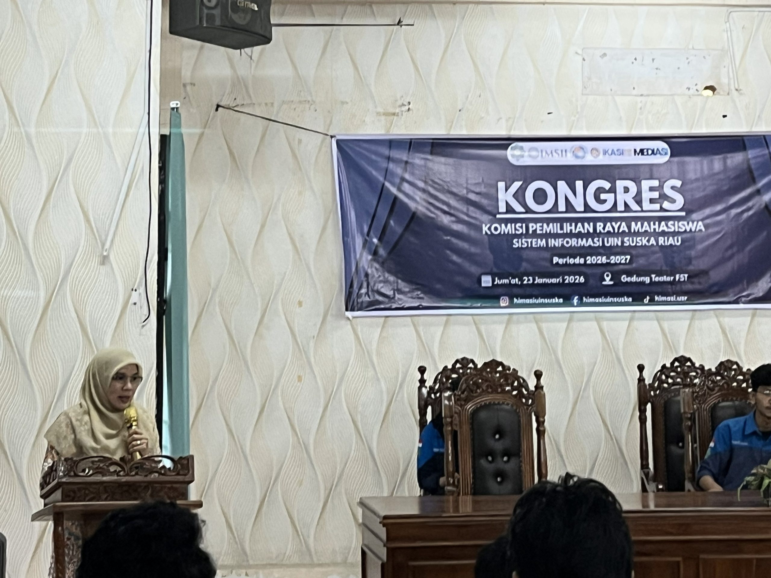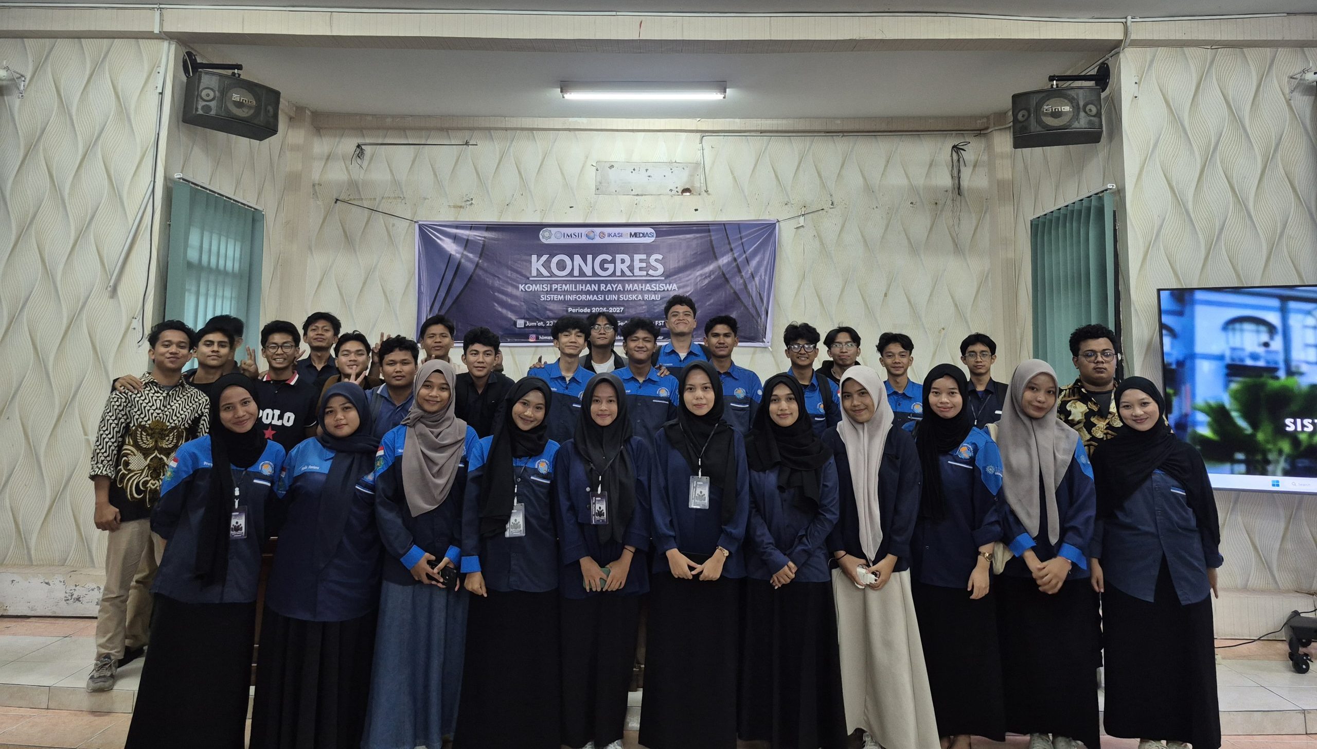 Pekanbaru, 23 januari 2026 – Program Studi Sistem Informasi sukses menyelenggarakan agenda Kongres Komisi Pemilihan Raya Mahasiswa (KPRM) Sistem Informasi Universitas Islam Negeri Sultan Syarif Kasim Riau Periode 2026-2027 yang bertempat di Ruangan Teater Fakultas Sains dan Teknologi. Kongres ini menjadi momentum krusial dalam menentukan arah kepemimpinan mahasiswa serta memastikan keberlanjutan organisasi yang demokratis di lingkungan program studi. Acara ini di hadiri langsung oleh Ketua Program Studi Sistem Informasi, Ibuk Angraini, S.Kom., M.Eng., Ph.D, jajaran pengurus organisasi mahasiswa, serta delegasi mahasiswa Sistem Informasi. Kehadiran pimpinan prodi menjadi bentuk dukungan nyata terhadap pengembangan karakter kepemimpinan dan integritas mahasiswa.