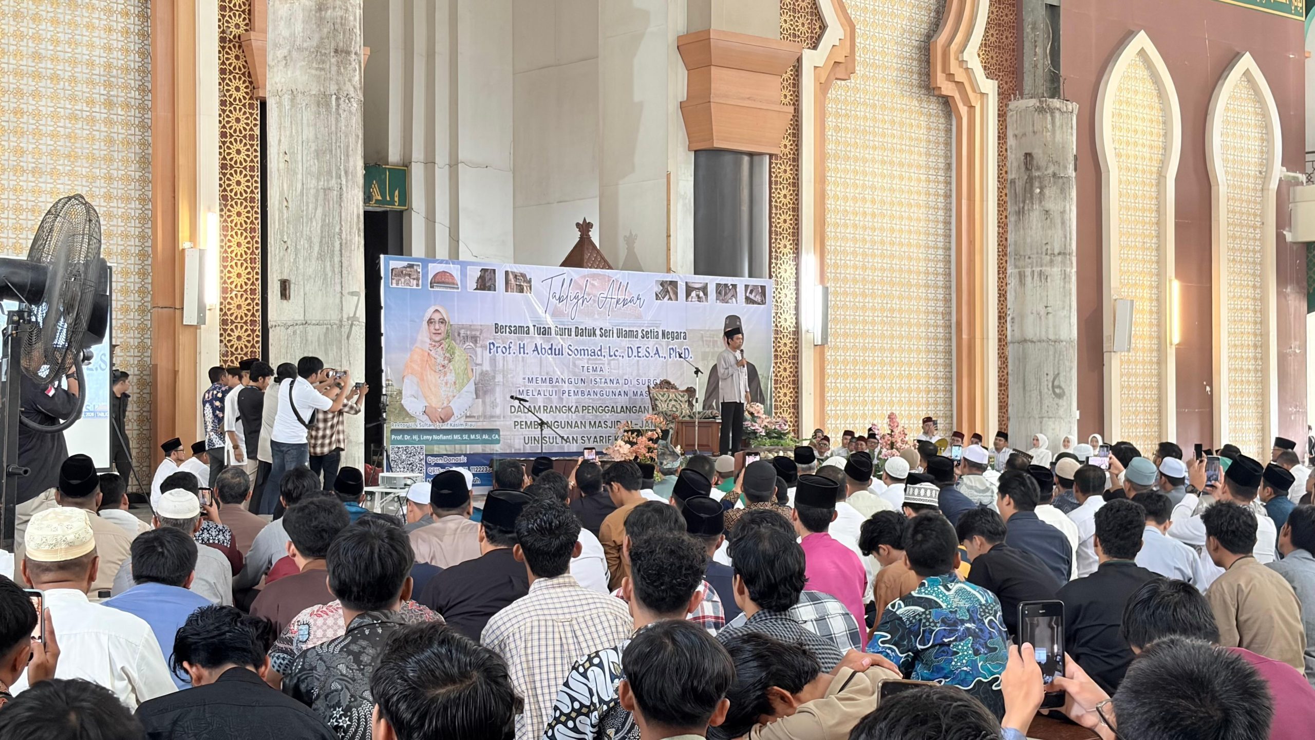 Pekanbaru, 29 April 2026. Pembangunan Masjid Al-Jami’ah yang sempat tertunda dilanjutkan kembali. Akhirnya sebuah langkah nyata diambil untuk menghidupkan kembali semangat pembangunan tersebut. UIN Sultan Syarif Kasim Riau menyelenggarakan Tabligh Akbar dan penggalangan dana pembangunan Masjid Al-Jami’ah bersama Prof. Datuk Seri Ulama Setia Negara H. Abdul Somad, Lc., D.E.S.A., Ph.D. Kegiatan yang terbuka untuk umum ini di Masjid Al-Jami’ah UIN Sultan Syarif Kasim Riau, berlangsung mulai pukul 08.00 hingga 11.30 WIB dengan melibatkan civitas akademika dan masyarakat luas. egiatan ini menjadi langkah nyata dalam menghidupkan kembali semangat pembangunan masjid dengan melibatkan civitas akademika dan masyarakat luas.